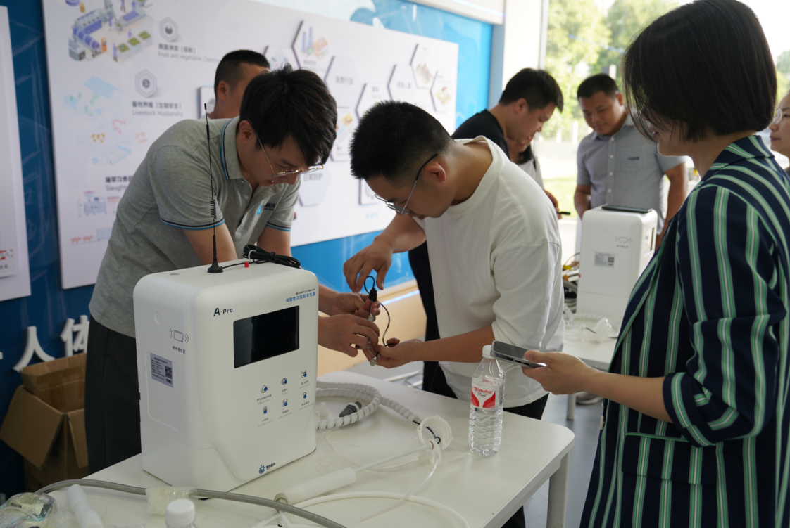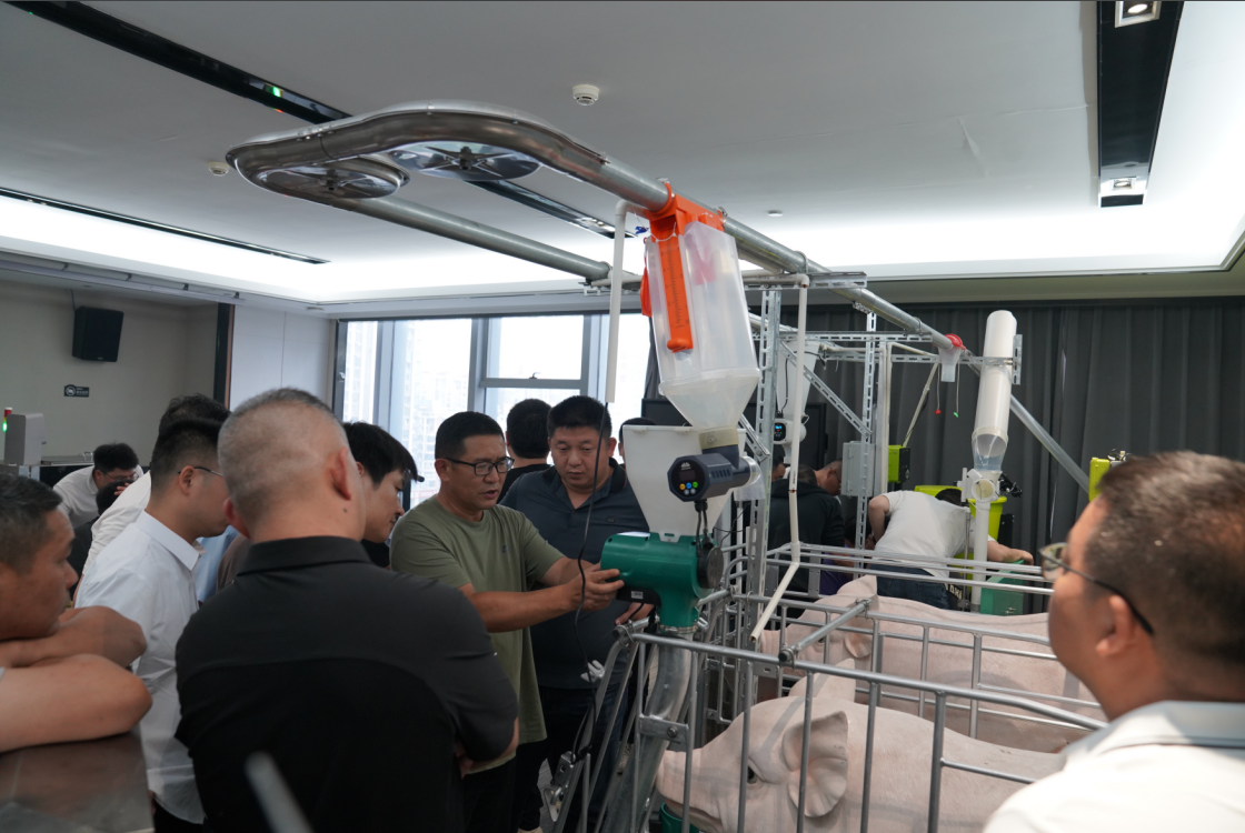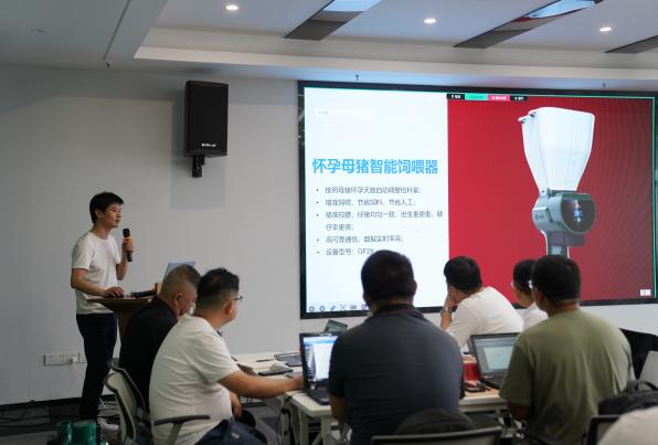 隨后潤農(nóng)羅清經(jīng)理介紹母豬飼喂器、懷孕飼喂器和粥料器等智能飼喂設(shè)備的應(yīng)用場景及價(jià)值點(diǎn),展示飼喂器實(shí)物和講解安裝操作方法。接著至潤農(nóng)展廳進(jìn)行參觀,現(xiàn)場進(jìn)行設(shè)備安裝調(diào)控操作和控制平臺操作的培訓(xùn),確保每個(gè)服務(wù)老師能講、能裝、能調(diào)試、能維護(hù),為客戶實(shí)現(xiàn)膘體管控+潤農(nóng)飼喂器的“一條龍”服務(wù)。